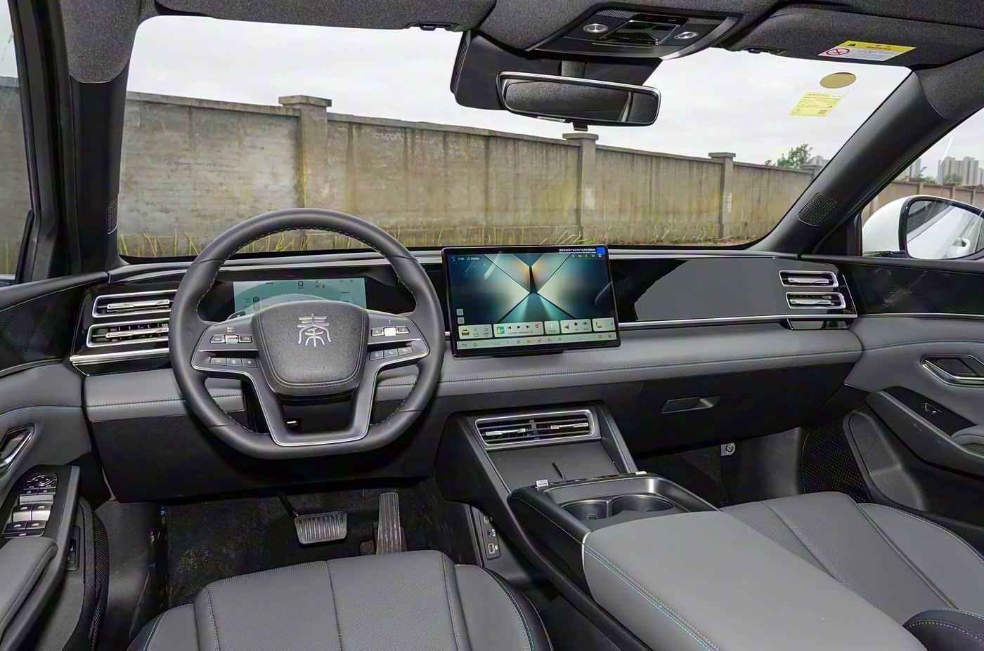 进入车内,秦L的内饰设计以简约科技风为主,15.6英寸旋转大屏与DiLink 100智能座舱的组合,支持双区域语音控制和3D控车功能,操作流畅度堪比智能手机。电子怀挡的引入,释放了中控台空间,提升了储物便利性。座椅采用皮质包裹,宽大厚实且支撑性良好,长途驾驶不易疲劳。轴距2790mm带来的后排腿部空间超过三拳,轻松满足家庭出行需求。后备厢规整灵活,日常通勤或周末出游的行李都能轻松容纳。